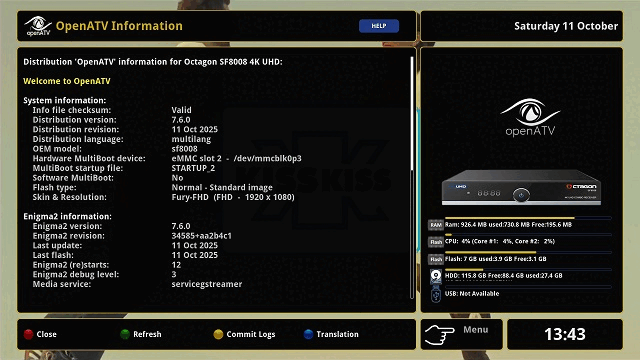 - Flash via Online image change (media/hdd/imagebackups/),